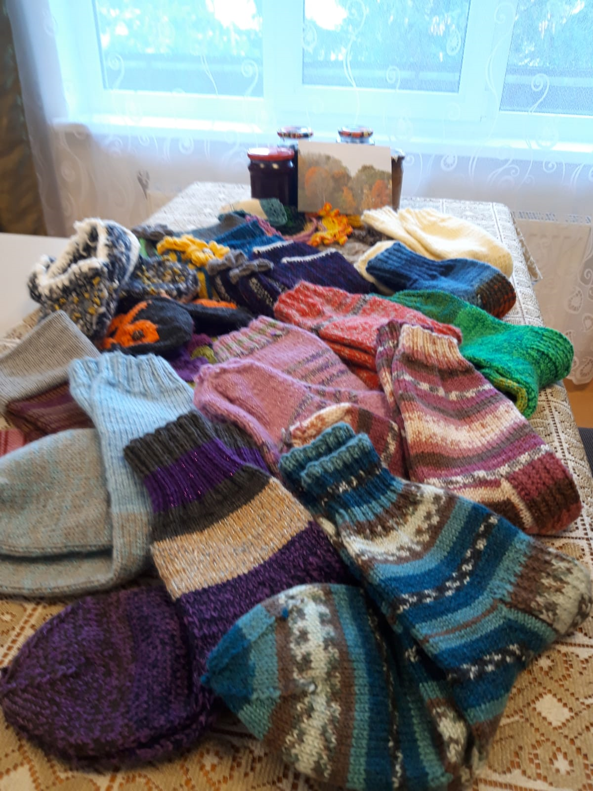 Oktobra labo darbu nedēļā saņēmām no biedrības “Pavadiņa” dāvanu, rokdarbus - zeķes, čības, kabatlakatiņus un mājas ievārījuma burciņas. Aprūpes nama iemītnieki saka lielu paldies biedrībai “Pavadiņa” par dāvanām!