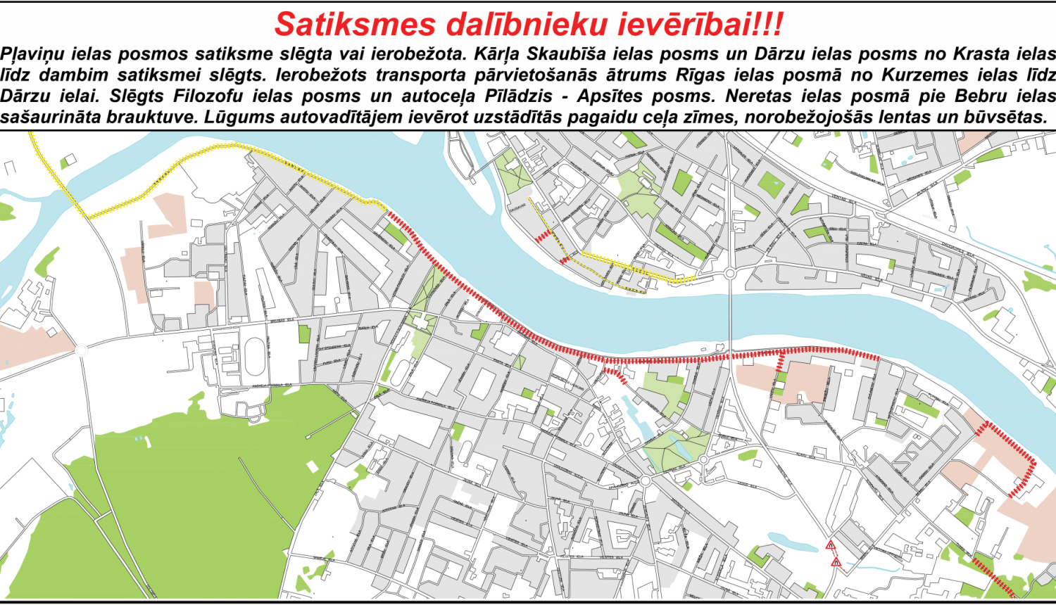 🔸Pļaviņu ielas posmos satiksme slēgta vai ierobežota.