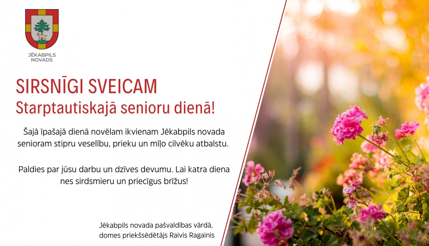 Šajā īpašajā dienā novēlam ikvienam Jēkabpils novada senioram stipru veselību, prieku un mīļo cilvēku atbalstu.