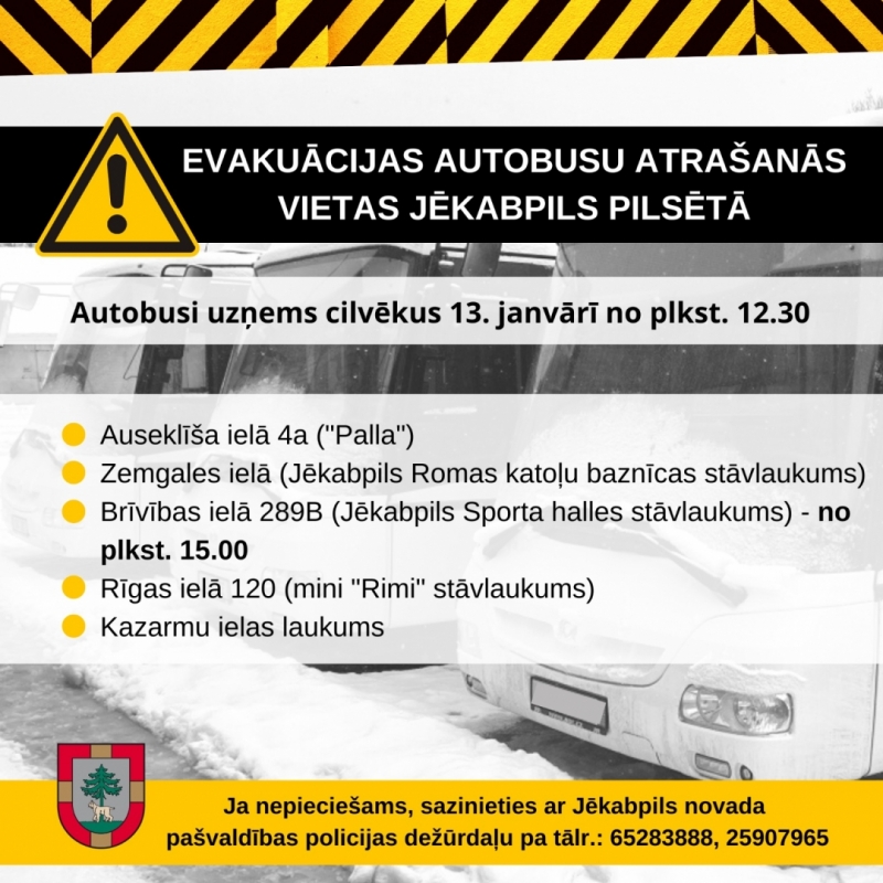 Evakuācijas autobusu atrašanās vieta: