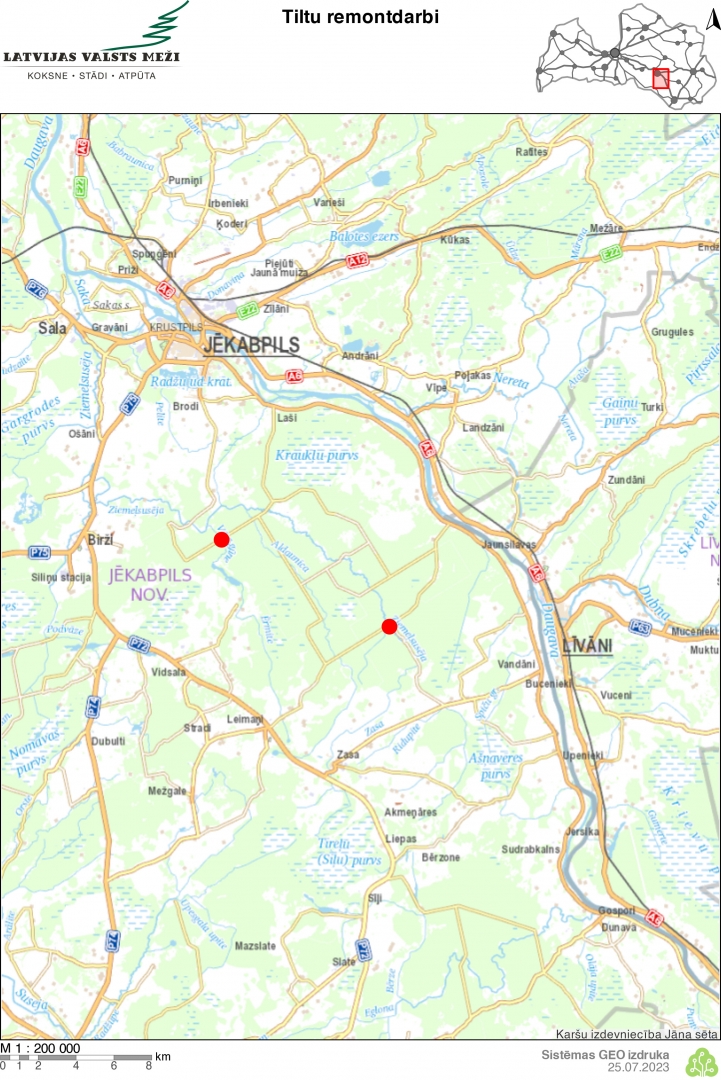 Akciju sabiedrība ‘’Latvijas valsts meži” informē, ka no 01.08.2023. tiks uzsākti ieplānotie būvdarbi Vārzgūnes tiltam Kalna pagastā un Ziemeļsusējas tiltam Dignājas pagastā.