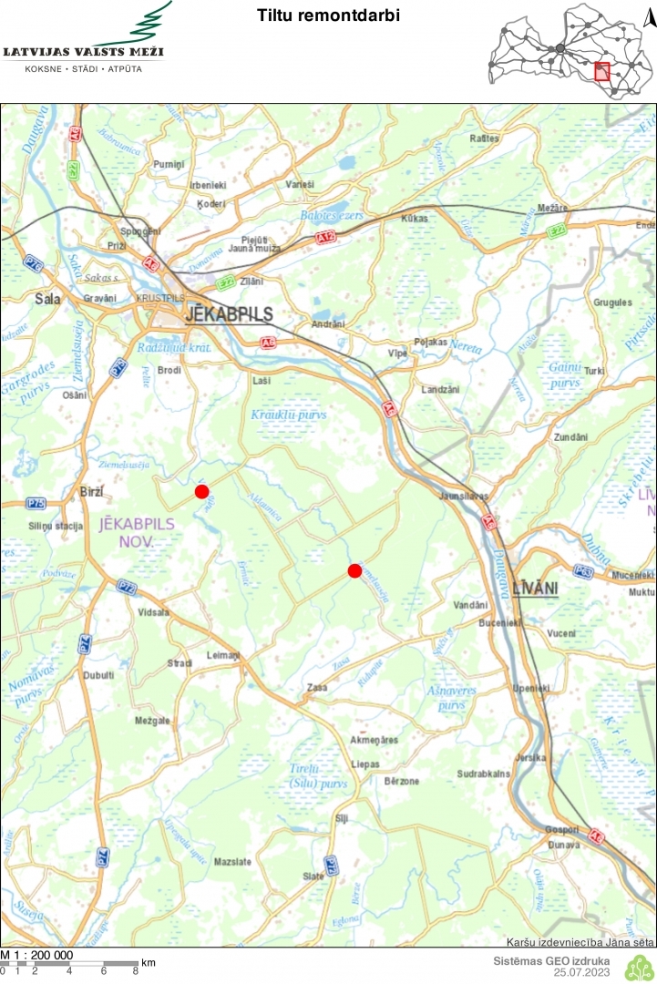 Būvdarbu laikā satiksme pār šiem tiltiem būs slēgta. Aicinām iedzīvotājus laikus ieplānot citus pārvietošanās maršrutus!