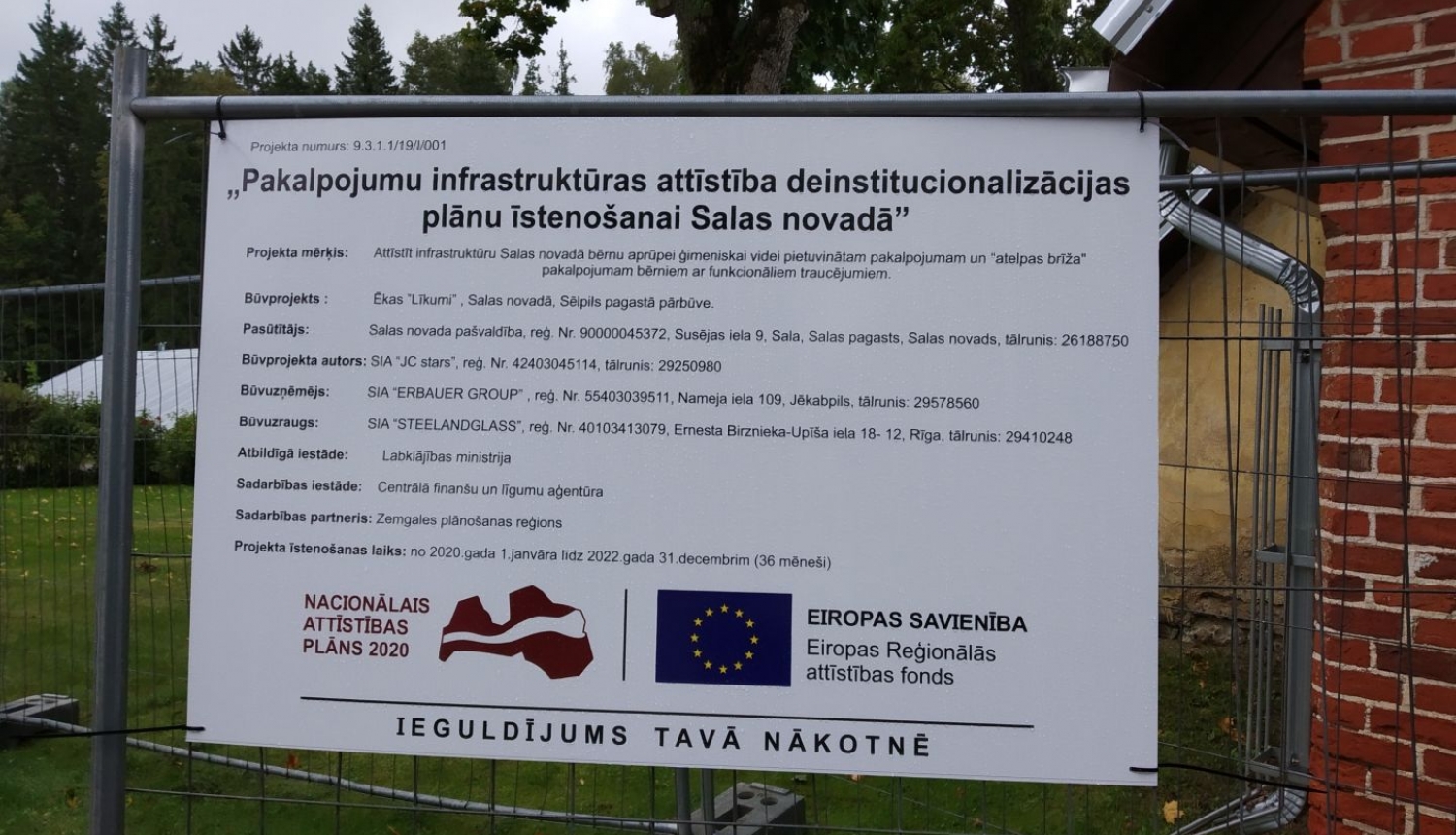 Projekta mērķis: Attīstīt sabiedrībā balstītu sociālo pakalpojumu infrastruktūru Salas novadā bērnu aprūpei ģimeniskai videi pietuvinātam pakalpojumam un “atelpas brīža" pakalpojumam bērniem ar funkcionāliem traucējumiem, pamatojoties uz Zemgales plānošanas reģiona izstrādāto plānu 2017.-2020. gadam. Pasākuma ietvaros sadarbības iestāde Centrālā finanšu un līgumu aģentūra, bet atbildīgās iestādes funkcijas pilda Labklājības ministrija.