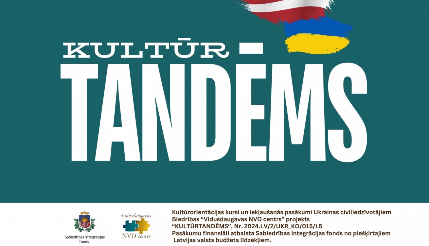 Biedrība “Vidusdaugavas NVO centrs” uzsāk projekta“KULTŪRTANDĒMS” realizēšanu, ko finansiāli atbalsta Sabiedrības integrācijas fonds no piešķirtajiem Latvijas valsts budžeta līdzekļiem, un aicina projekta aktivitātēm pieteikties Ukrainas civiliedzīvotāju bērnus un jauniešus, kuri, bēgot no kara savā valstī, pašlaik dzīvo Latvijā, Jēkabpils vai Aizkraukles novados, daudzveidīgās aktivitātēs iesaistot arī viņu ģimenes locekļus un uzņemošās kopienas pārstāvjus.