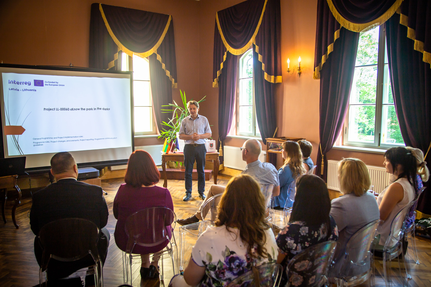 Interreg VI-A Latvijas-Lietuvas pārrobežu sadarbības programmas 2021.-2027. gadam projekta Nr. LL-00060 “Iepazīsti parku tumsā” ietvaros šī gada 31. maijā Jēkabpils Vēstures muzeja telpās Krustpils pilī Jēkabpils novada pašvaldība, kā vadošais partneris, organizēja pirmo projekta vadības grupas sanāksmi. Sanāksmē piedalījās projekta partnera – Pasvalys rajona pašvaldības pārstāvji: Paulius Petkevičius, Pasvalys rajona pašvadības administrācijas direktora vietnieks, Joana Grincevičiene, Pasvalys rajona pašvadības ainavu speciāliste, Jolita Šležaite, Pasvalys reģiona muzeja direktora vietniece, Gražvydas Balčiūnaitis, Pasvalys rajona pašvadības kultūras mantojuma speciālists, savukārt, Jēkabpils novada pašvaldību pasākumā pārstāvēja Kārlis Stars, Jēkabpils novada domes priekšsēdētāja vietnieks attīstības jautājumos, Anita Moskovska, Jēkabpils novada pašvaldības izpilddirektora vietniece, Sandra Gogule, Projektu vadības nodaļas vadītāja, Inese Berķe, Jēkabpils Vēstures muzeja vadītāja, Laura Trukšāne, Jēkabpils novada TIC vadītāja, Agnese Kalniņa, vecākā projektu vadītāja un Santa Ancīte, projektu grāmatvede..
