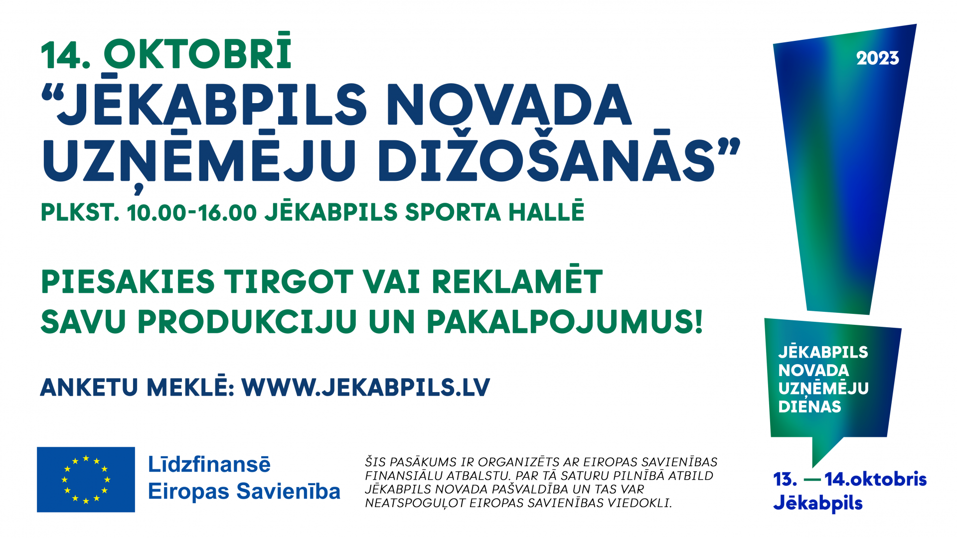 14. oktobrī no plkst. 10.00 – 16.00 Jēkabpils sporta hallē norisināsies Jēkabpils novada uzņēmēju dižošanās pasākums.