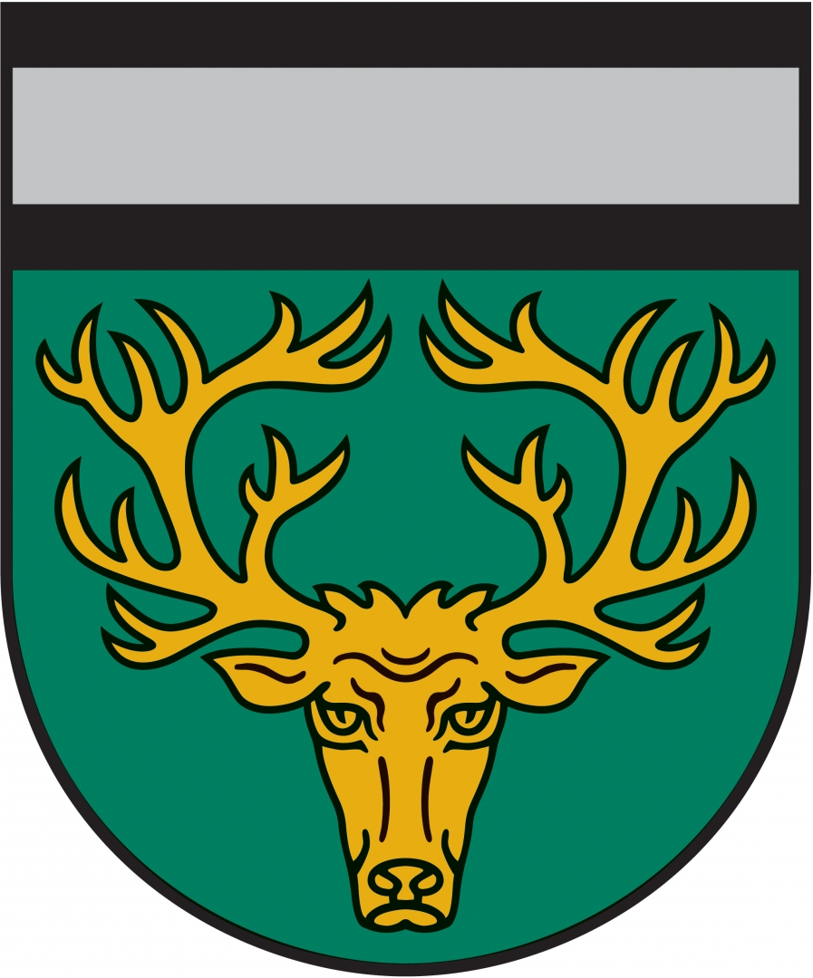 Ģerboņa apraksts: Zaļā laukā zelta brieža galva, sudraba vairoga galva pārsegta un atbalstīta ar melnu.