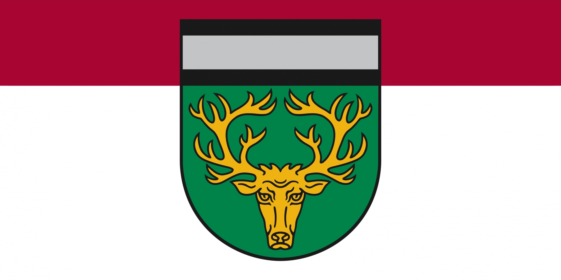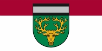 Zaļā laukā zelta brieža galva, sudraba vairoga galva pārsegta un atbalstīta ar melnu.