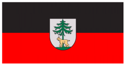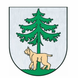 Ģerboņa apraksts: Sudraba laukā zaļa egle uz tādas pašas pamatnes, priekšā ejošs lūsis dabiskās krāsās. Sarkana ar zelta krustu dalīta apmale.