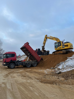 Sliktu laikapstākļu dēļ Daugavas aizsargdambja būvdarbi ir apstājušies uz ziemu. Darbi atsāksies 2025. gada pavasarī, kad būs labi laikapstākļi.
